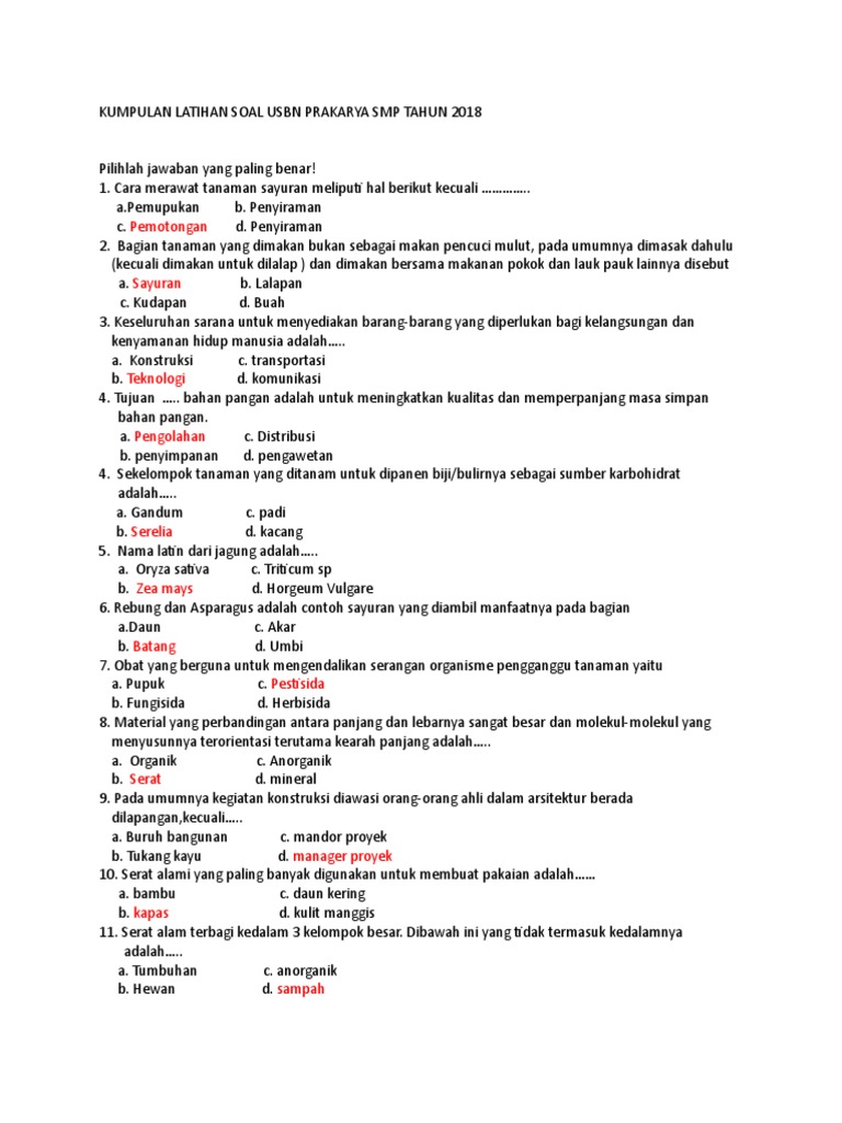 Jawablah pertanyaan berikut ini dengan memilih pernyataan yang paling tepat. Karena biasanya soal pat prakarya semester 2 kelas 9 yang akan diujikan tidak jauh berbeda dengan soal tahun sebelumnya. Kumpulan soal prakarya uts prakarya smp vii semester 1 contoh soal ujian semester 1 prakarya kelas 7 | ilmu. Tanpa adanya kunci jawaban maupun pembahasan. S oal pat prakarya kelas 9 semester 2 kurikulum 2013 ini sudah dilengkapi beserta kunci jawaban.