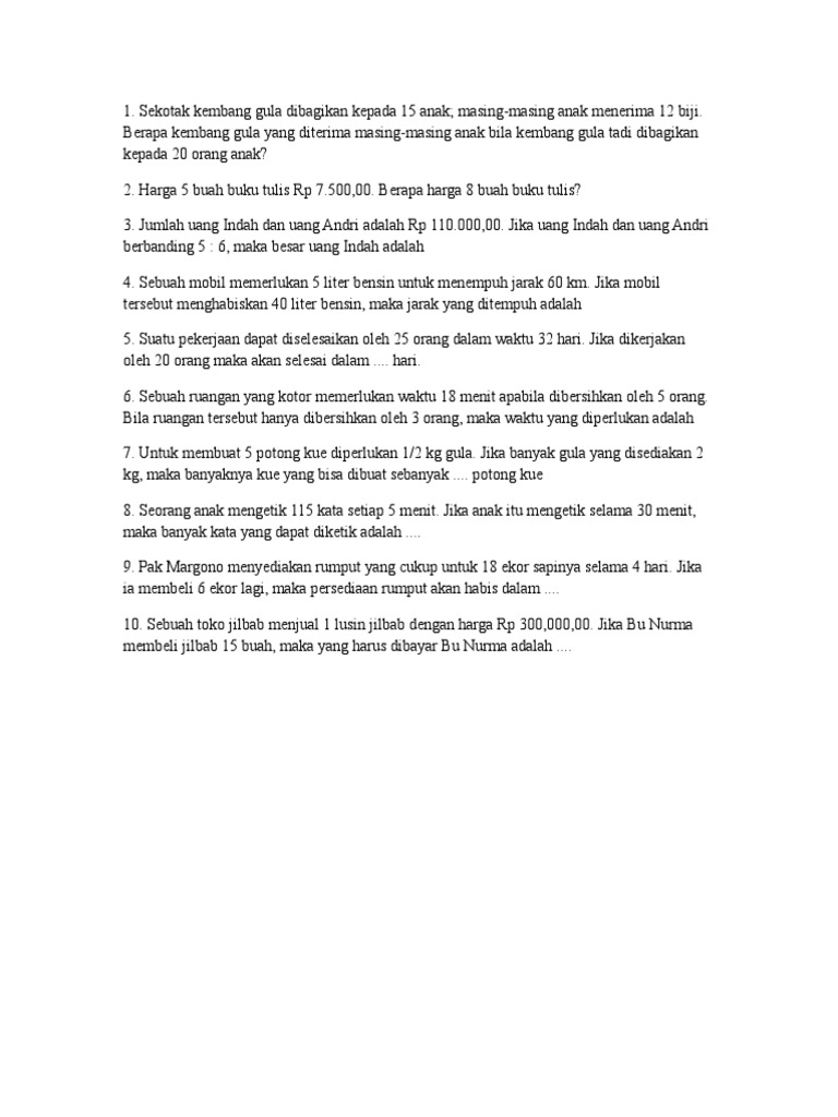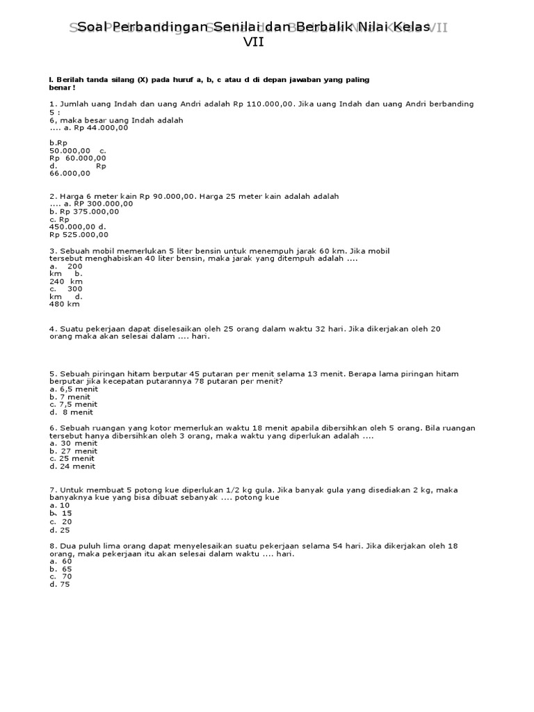 Latihan Soal Perbandingan Kelas 7 Worksheet from files.liveworksheets.com Maybe you would like to learn more about one of these? Suatu pekerjaan dapat diselesaikan oleh 25 orang dalam waktu 60 hari. We did not find results for: Check spelling or type a new query.